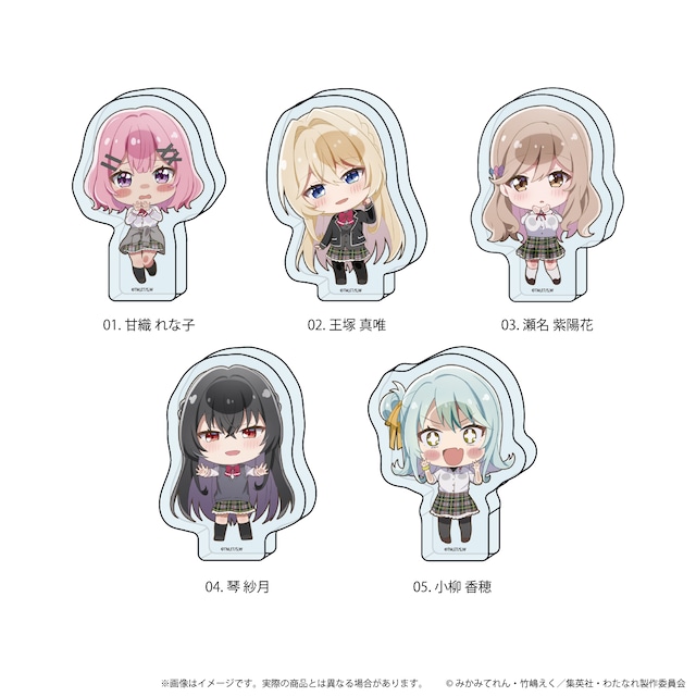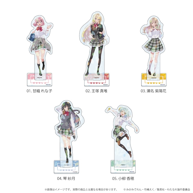 ■概要:アクリル製のキーホルダーです。(ボールチェーン付き) 全5種コンプリートBOXでの販売です。 ■サイズ:H65×W65×D3(mm)以内 ■素材:アクリル、金属パーツ ※ご注意※ ・画像はイメージです。実際の商品とは異なる場合があります。 ・お届け時期の異なる商品を同時にお買い求めいただいた場合、時期の遅い商品に合わせての発送となります。 ・発送準備状況により商品の発送予定期間が前後する可能性がありますので、あらかじめご了承ください。 ・ご注文後のキャンセルはできません。 ・国内発送のみ ・細心の注意を払っておりますが、製造・梱包過程において細かい傷が生じる可能性がございますことをご了承ください。 ©みかみてれん・竹嶋えく/集英社・わたなれ製作委員会 ■特典対象商品:こちらの商品は「キャンバスポストカード(特典)『わたしが恋人になれるわけないじゃん、ムリムリ!(※ムリじゃなかった!?)』(新商品購入キャンペーン)」の特典配布対象となります。 ■特典:対象商品を3300円(税込)ご購入ごとに、特典キャンバスポストカード(全5種)をランダムで1枚お付けします。 また、対象商品を11000円(税込)以上ご購入のお客様には全5種コンプリートセットをプレゼントいたします。 ※数量には限りがあります。なくなり次第終了となりますので予めご了承ください。 ※送料は含まれません。 ※特典は1会計ごとの金額でお付けします。