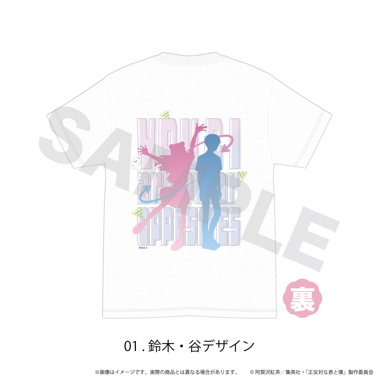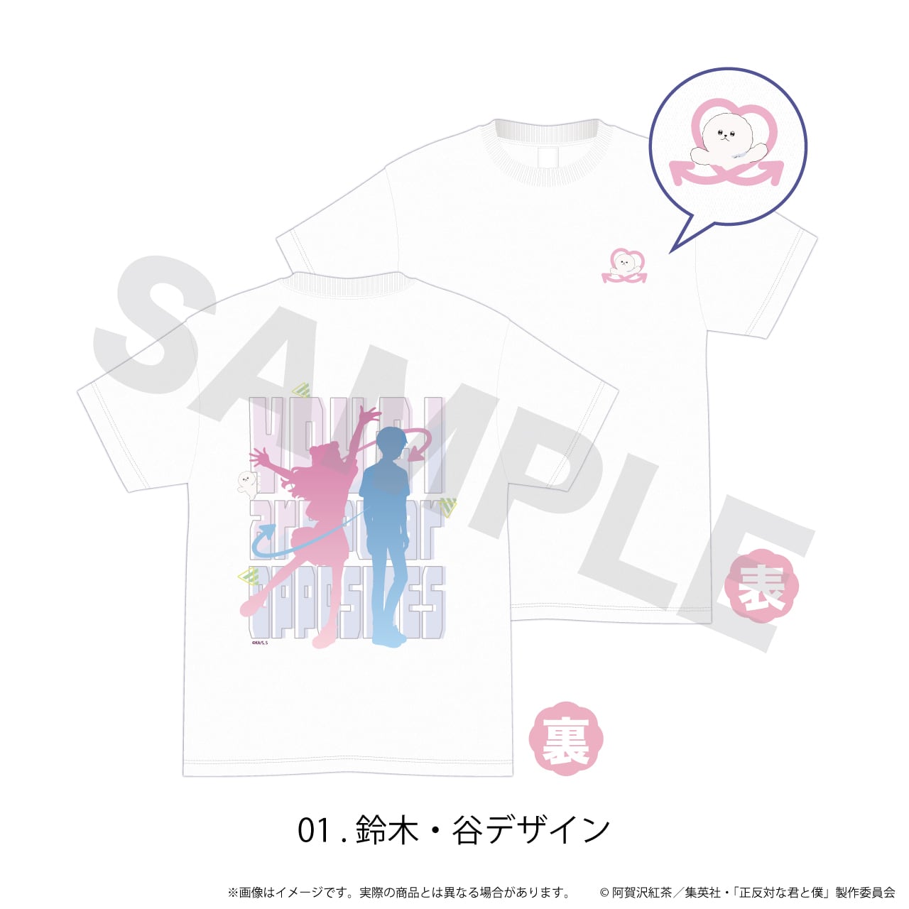 Tシャツ(白)「正反対な君と僕」01/鈴木・谷デザイン