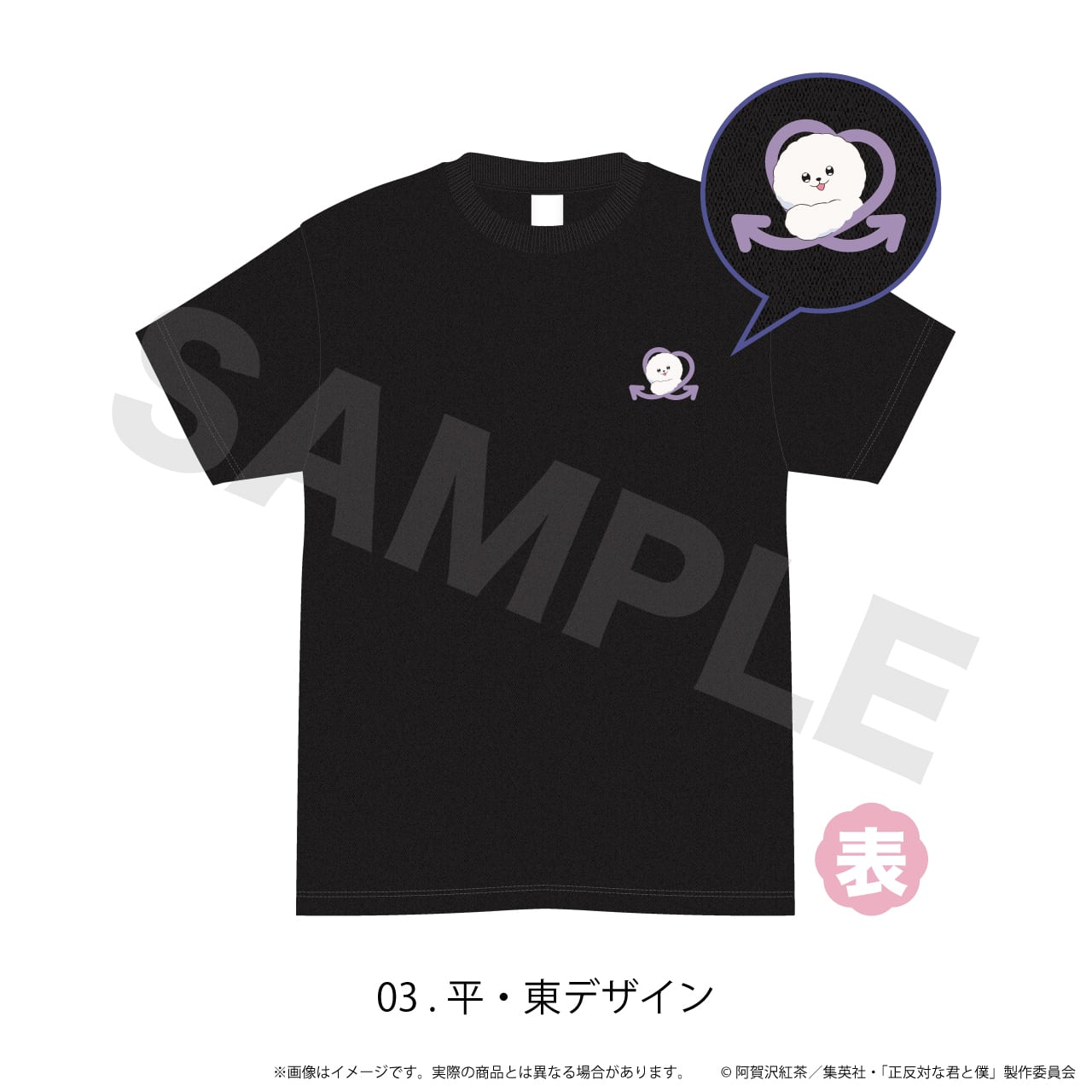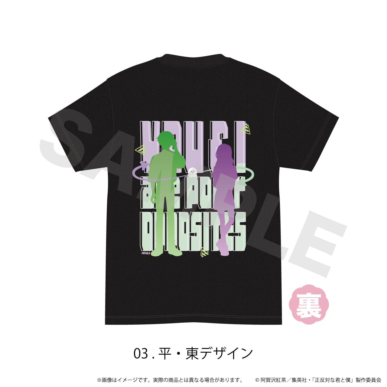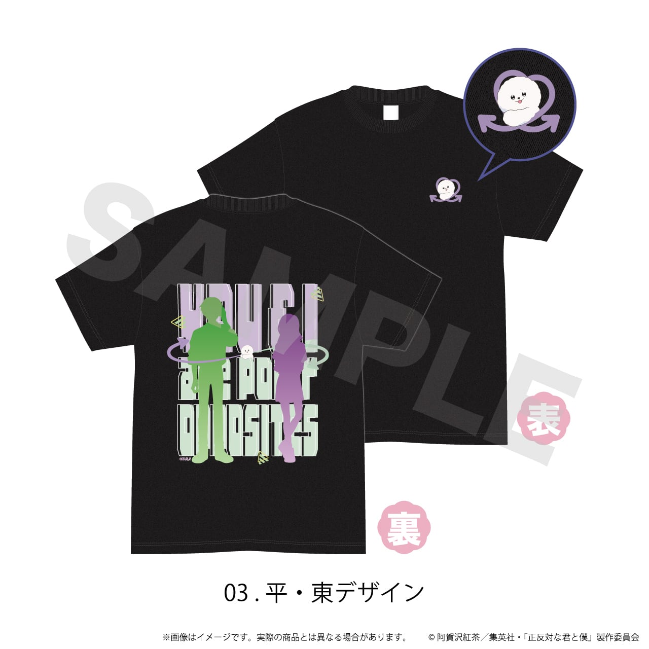 Tシャツ(黒)「正反対な君と僕」03/平・東デザイン